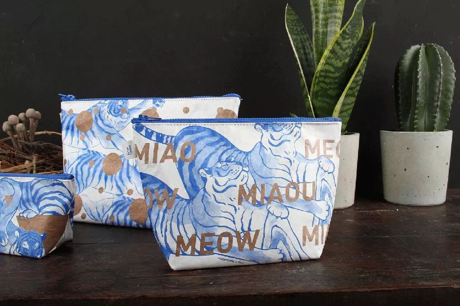 FYBER FORMA x ZISHI ART 聯名款“只是玩虎系列”,ZISHI為臺灣新生代創作者兼品牌工作室,其品牌精神是為生活注入藝術的思維。FYBER FORMA以拼貼設計的手法,將ZISHI經典老虎圖像,搭配紅金色的現代幾何圖像,印刷在Tyvek? 材料上制成風格獨特的收納包。